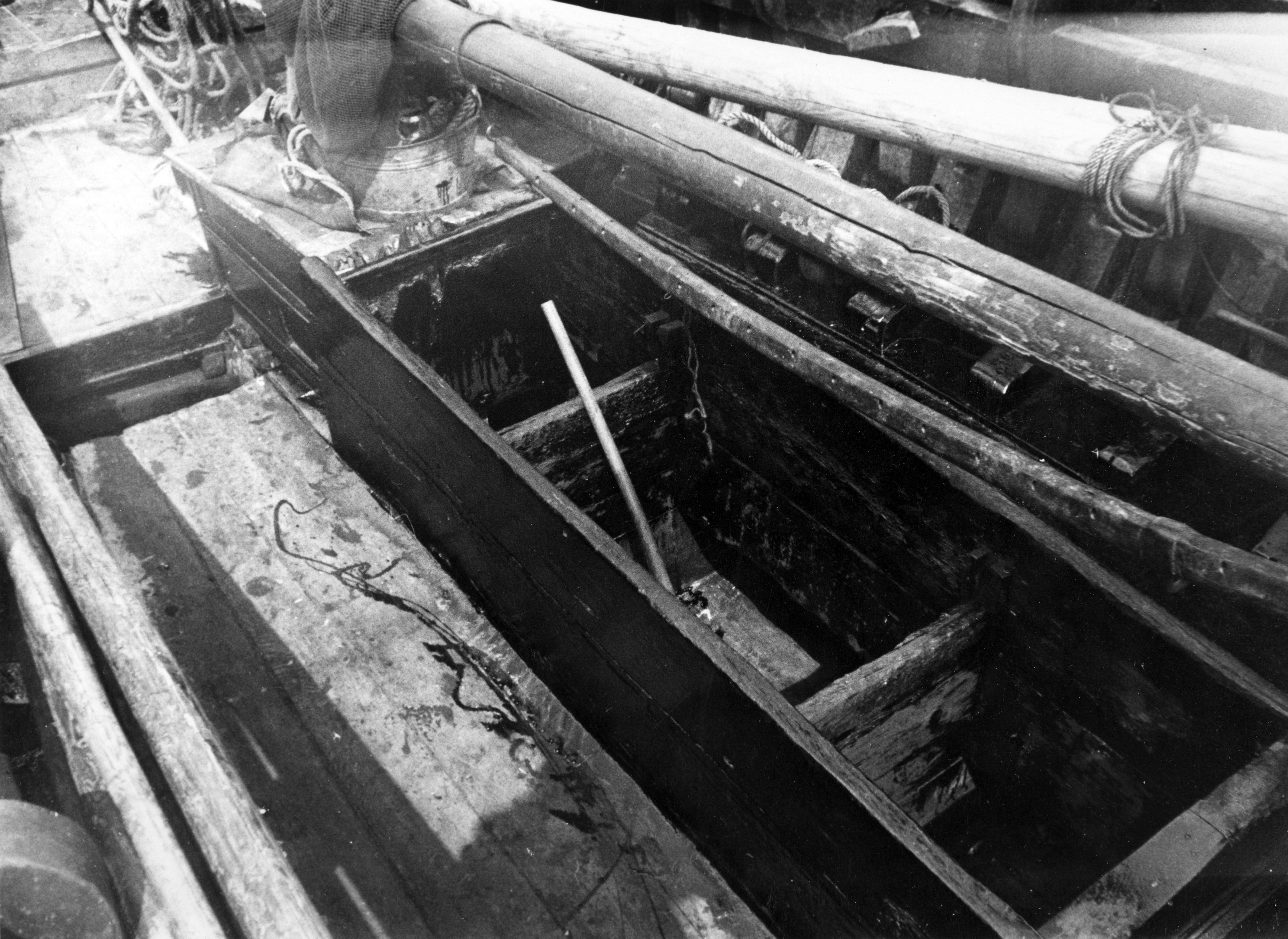 Visbun van botter MK 88, Marken, 1943 (zwart-wit foto)