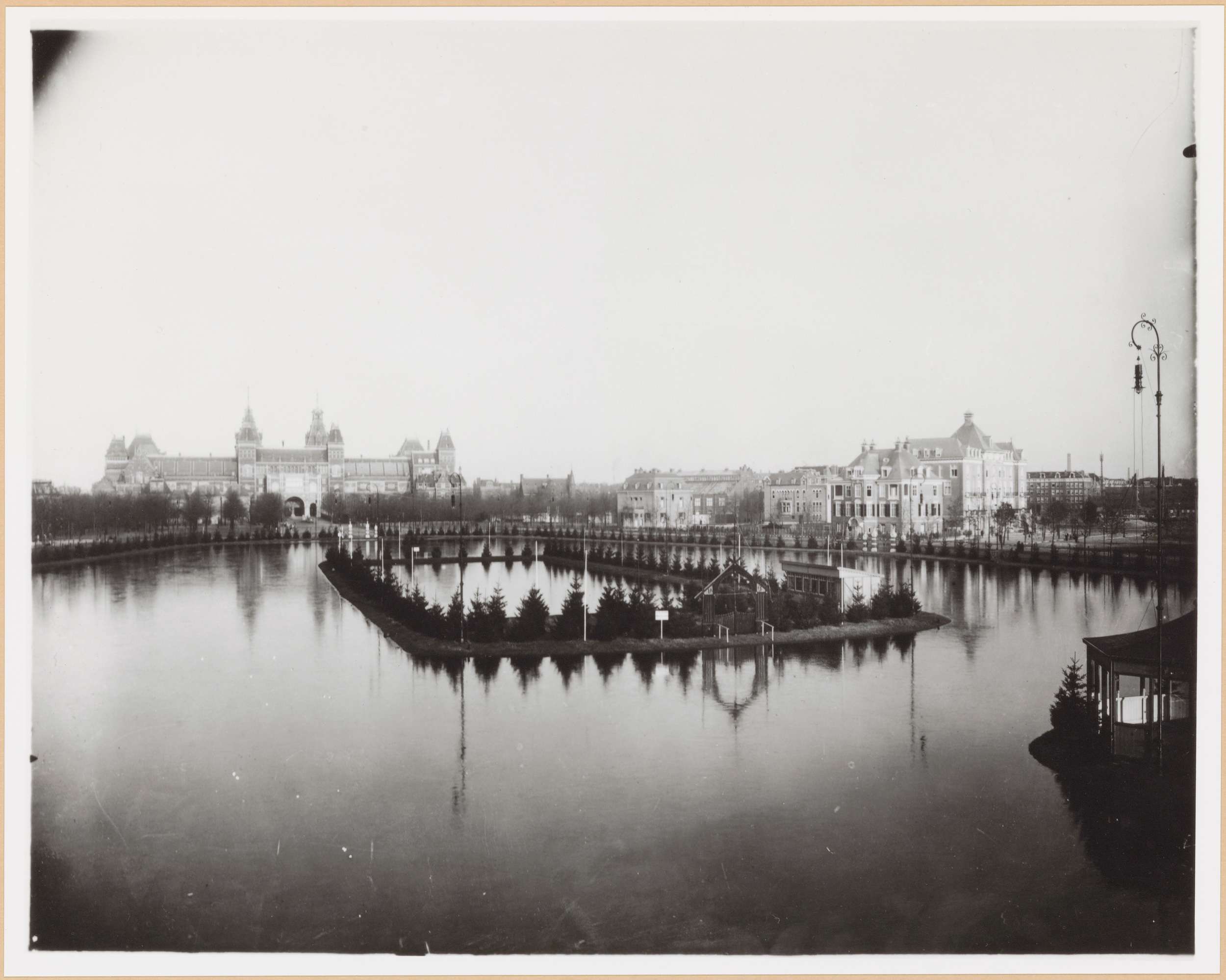 Achterzijde Rijksmuseum gezien vanaf de vijver