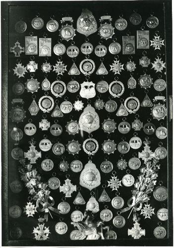 Foto in zwart-wit van een medaillekast door J.D. de ...