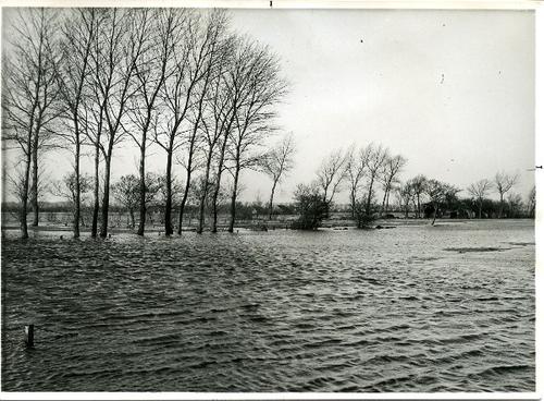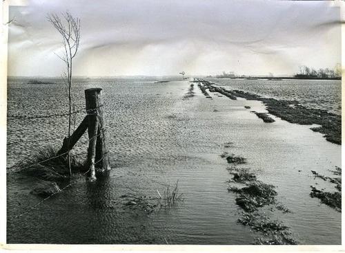 Foto in zwart-wit van ondergelopen land door J.D. de...
