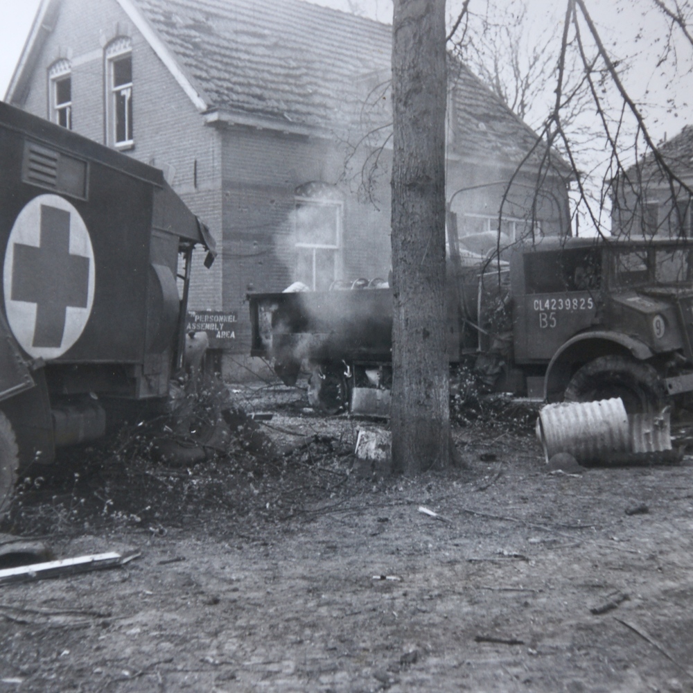 Canadese voertuig Dorpsstraat april 1945. WOII.
