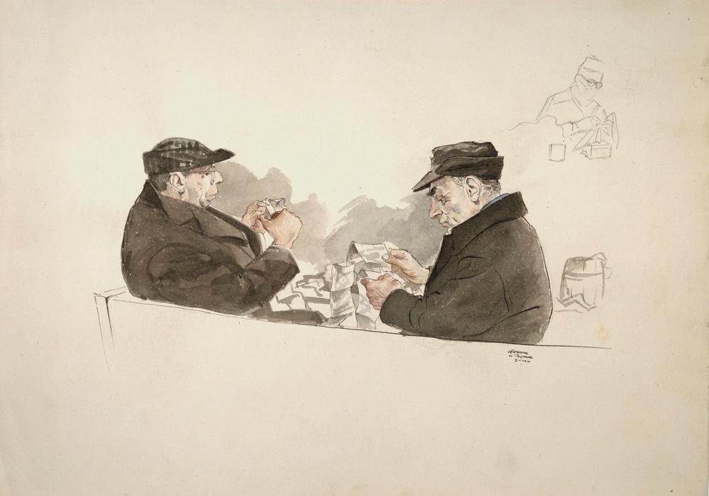 Dhr. Gompertz en dhr Hartog aan het folien plukken.