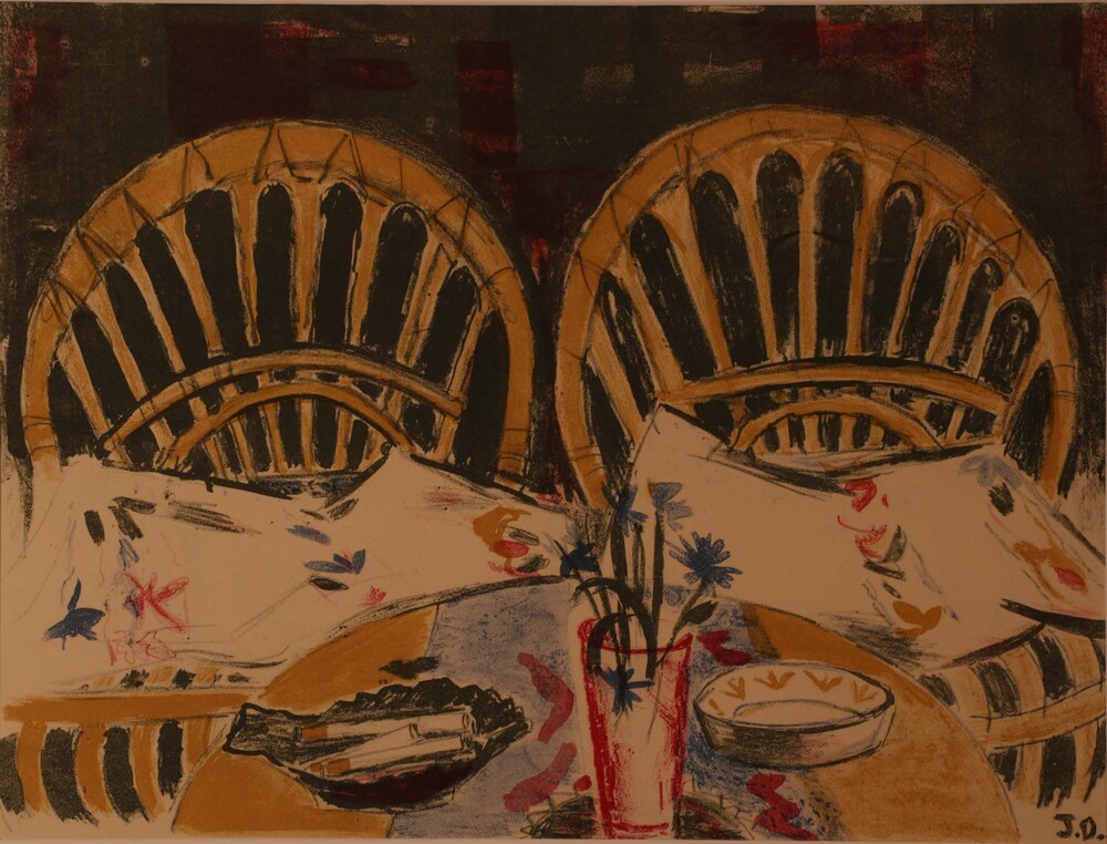 Tafel met twee rotan stoelen