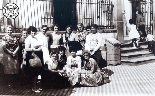 V.l.n.r., staand: mevr. Groot; mevr. Derks; mevr. Bruins; pater Paulinus; mevr. Schoenmaker; mevr. Clijsters; mevr. Bakker; mevr. van Schaik; mevr. J. de Wit; V.l.n.r., gehurkt: Cis Bos; Margriet Clijsters; Dina Eltink; Maria Jeuken. (2)