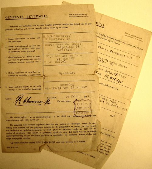 Aanvraag ontheffing spertijd jeugdige personen WO-II...
