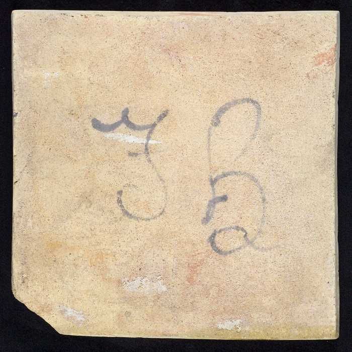 Bloemtegel met tulp in gekarteld vierkant, blauw dec...