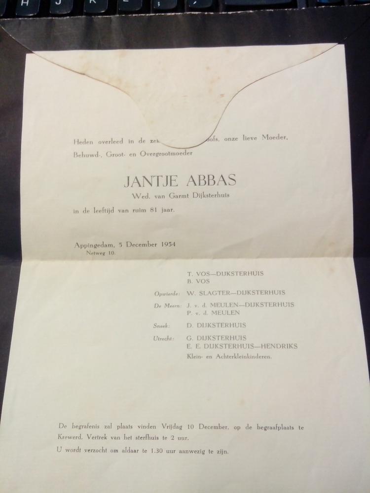 Rouwbrief Jantje Abbas