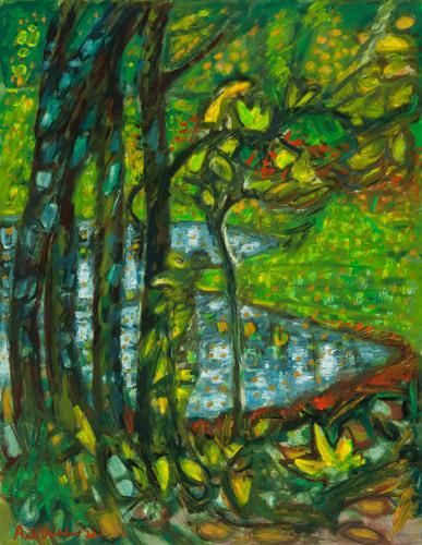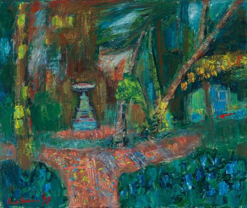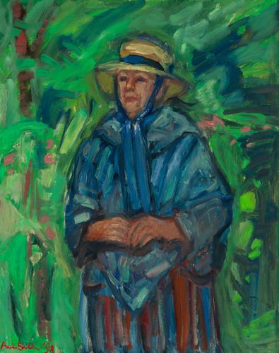 In de tuin, zelfpotret