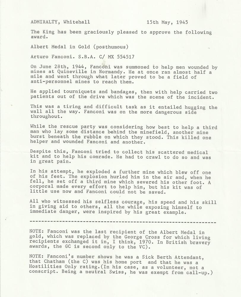 Afschrift oorkonde A. Fanconi Betreft A. Fanconi