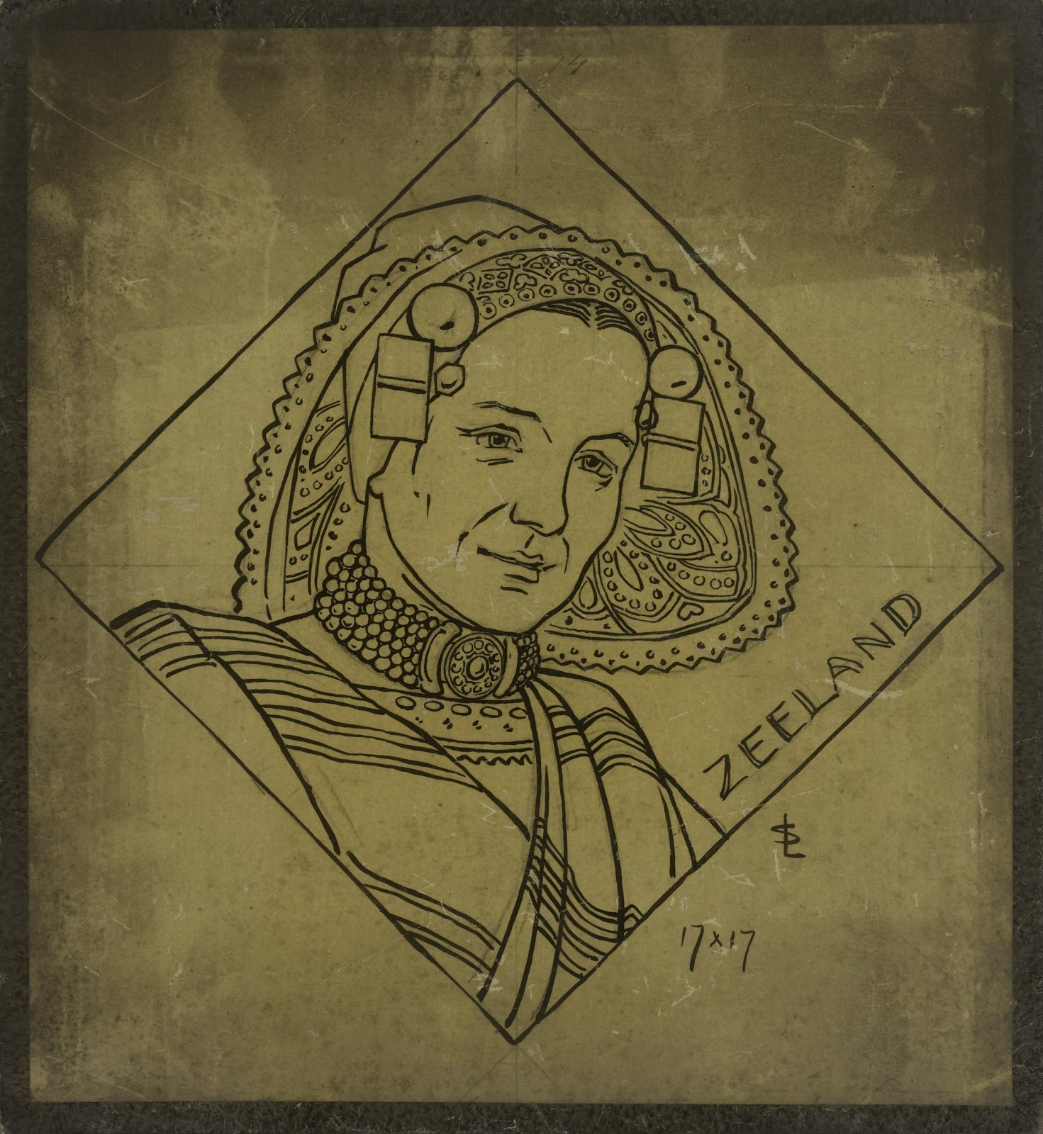 verpakking, figuurvoorstelling, figuur, vrouw, kop, koffiekop, dienblad, spaarzegel, zegel, afgesneden cirkel (14)