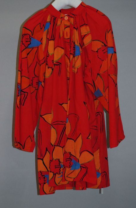 Wijde mini-jurk met lange mouwen, rood gebloemd