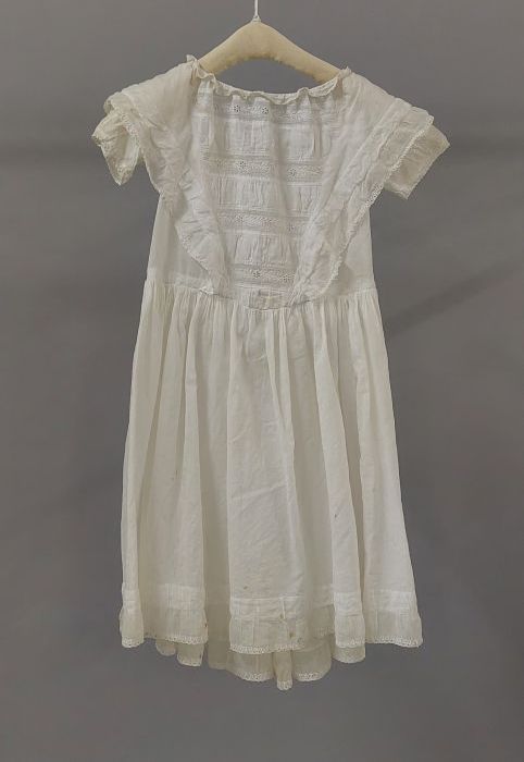 Wit kinderjurkje met korte mouw, boothals, rok achte...
