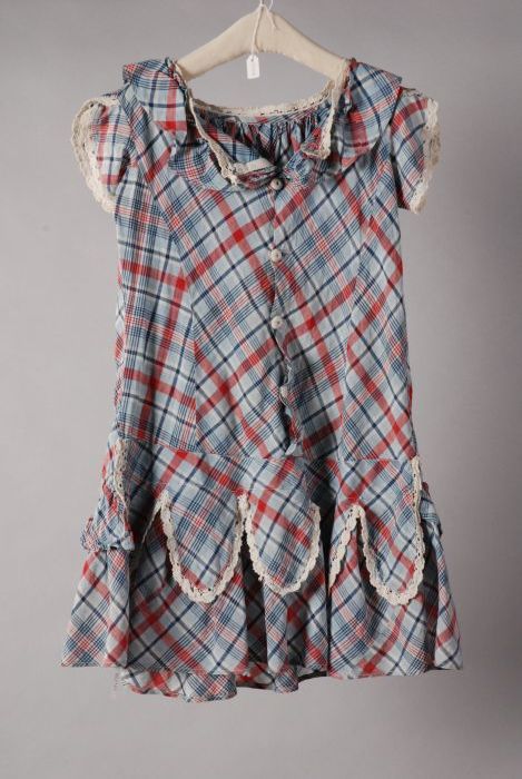 Kinderjurk van rood-wit-blauw geruit katoen, volant ...