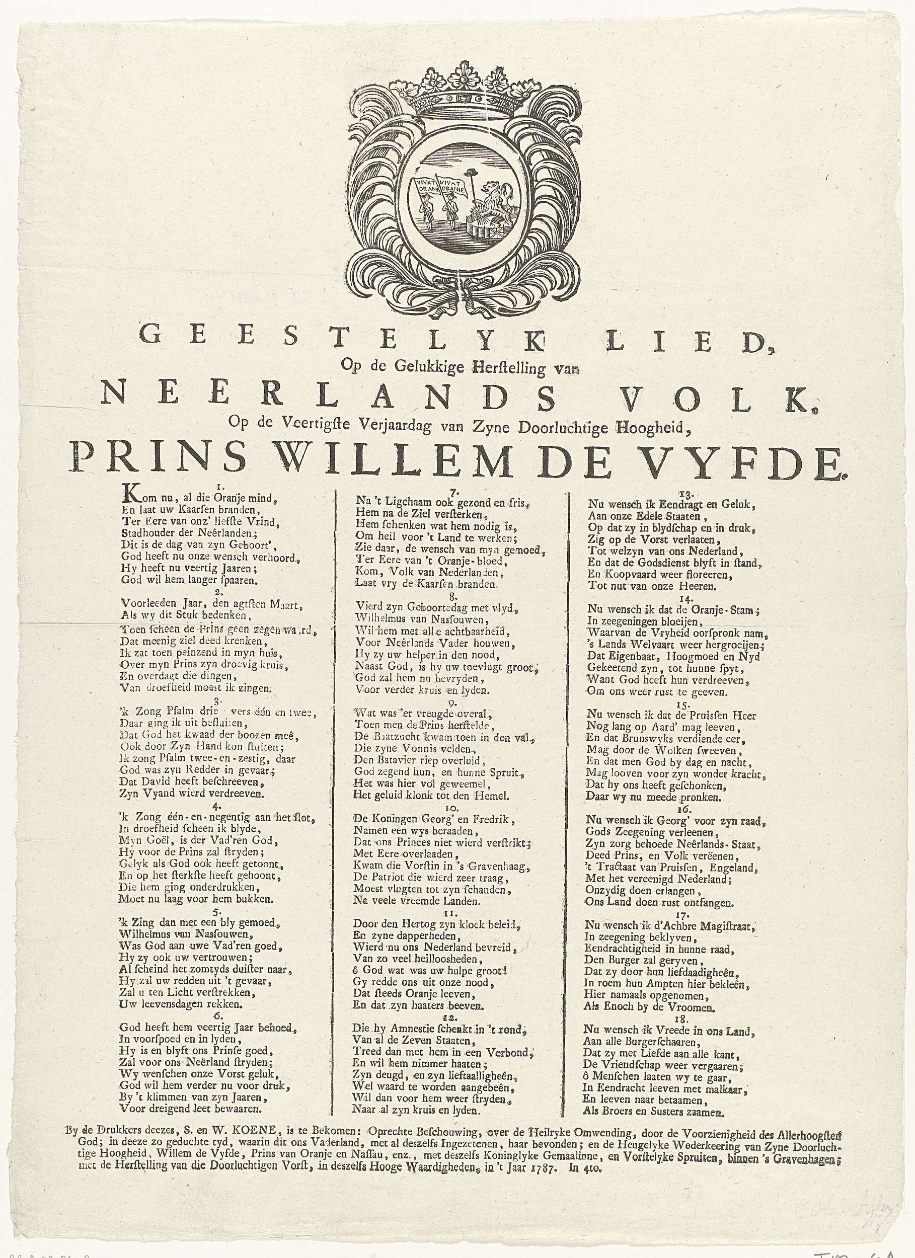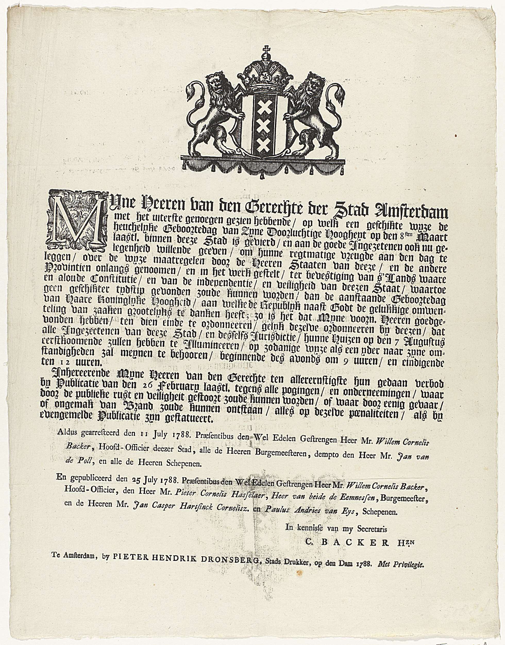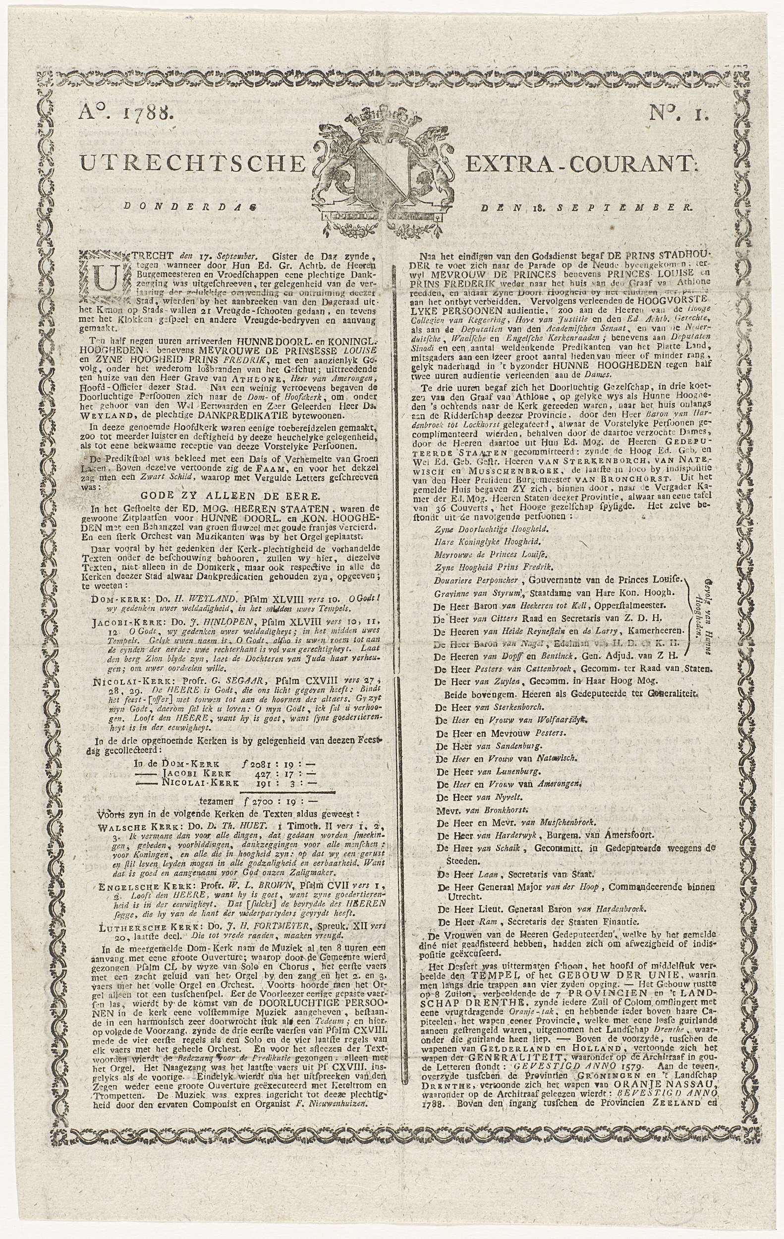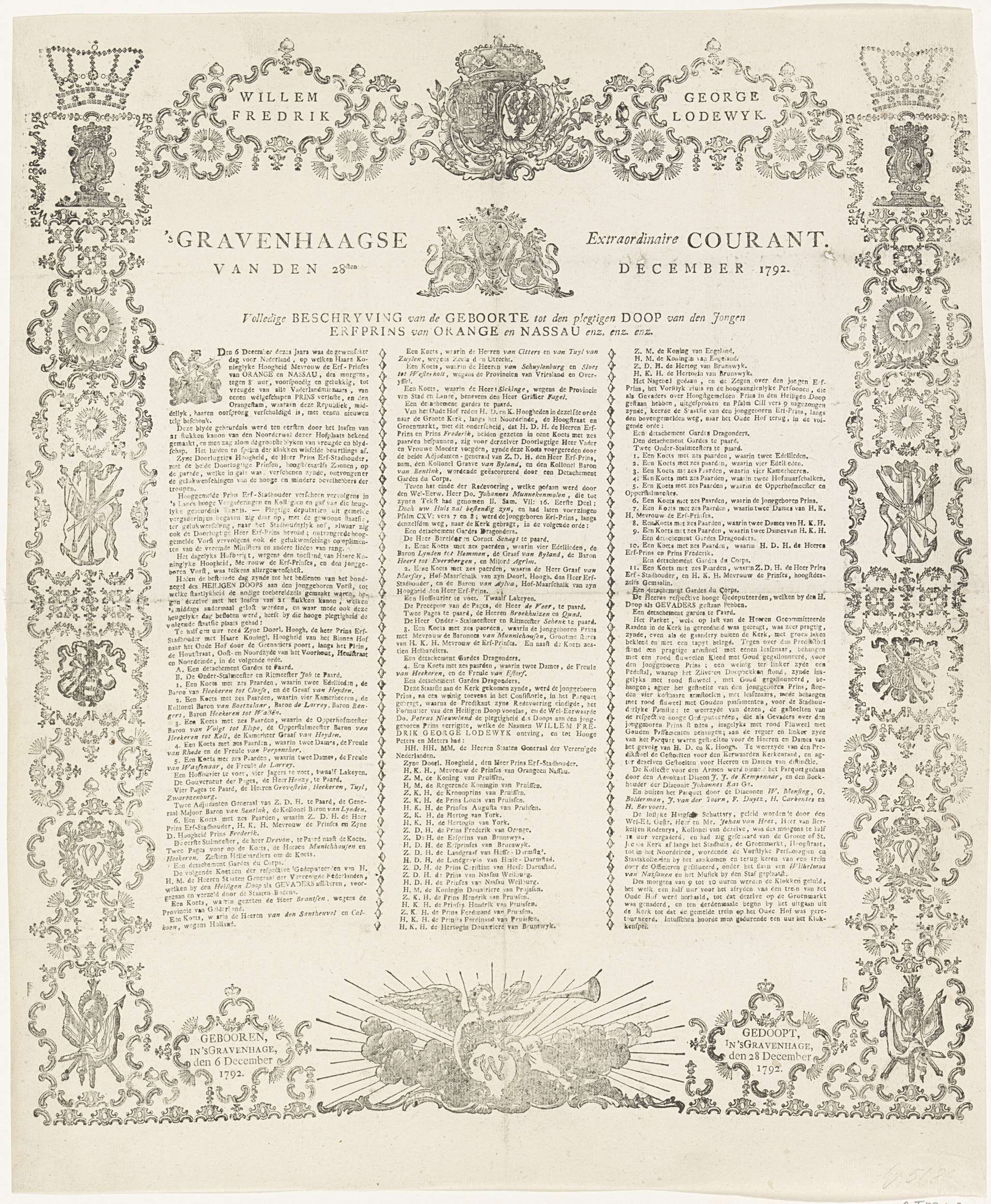 Vreugdecourant bij de geboorte van prins Willem Fred...