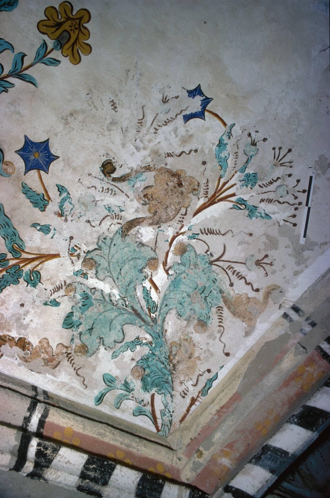 Tegel in zeefdruk, met voorstelling: decor Daisy, ve...