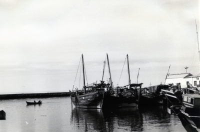 Op de voorgrond een Bûm met één mast, erachter een a...