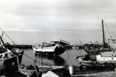 Diverse schepen op het droge en in het water.