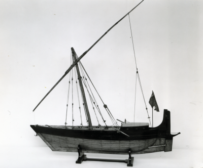 Een model van een Dhow voor watertransport.