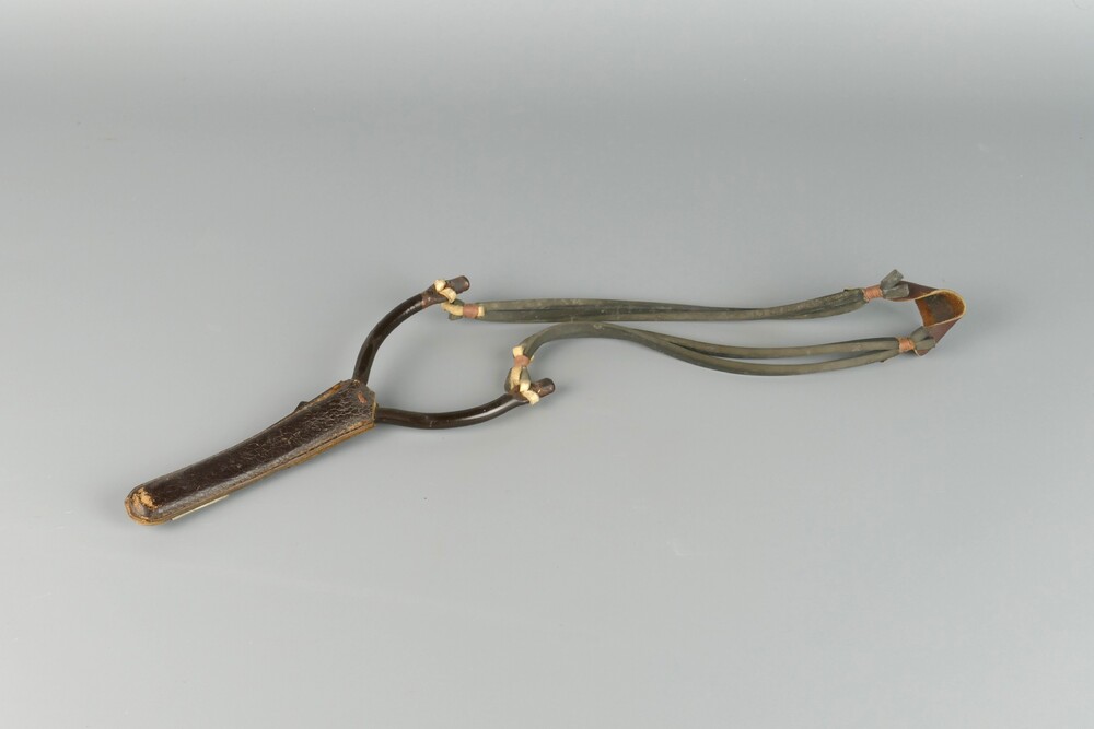 katapult van metaal met leer en rubber, tweede helft...