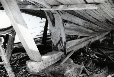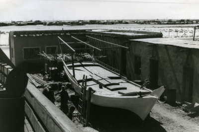Een Huri in aanbouw, de boeg is nog niet afgewerkt. ...