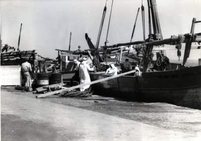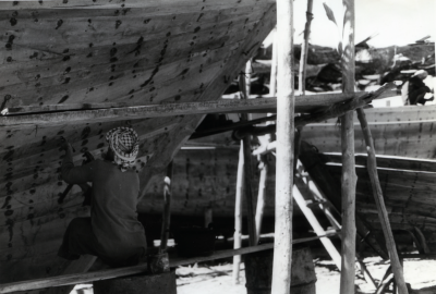 Failaka eiland, te water laten van een Jalbût/Shuai.