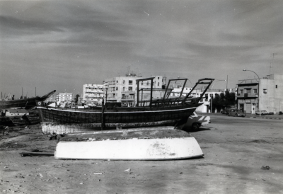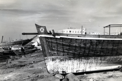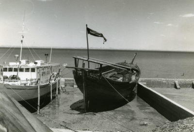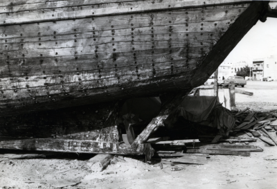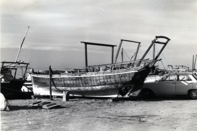 Een Jalbût op het droge, bakboordzijde.