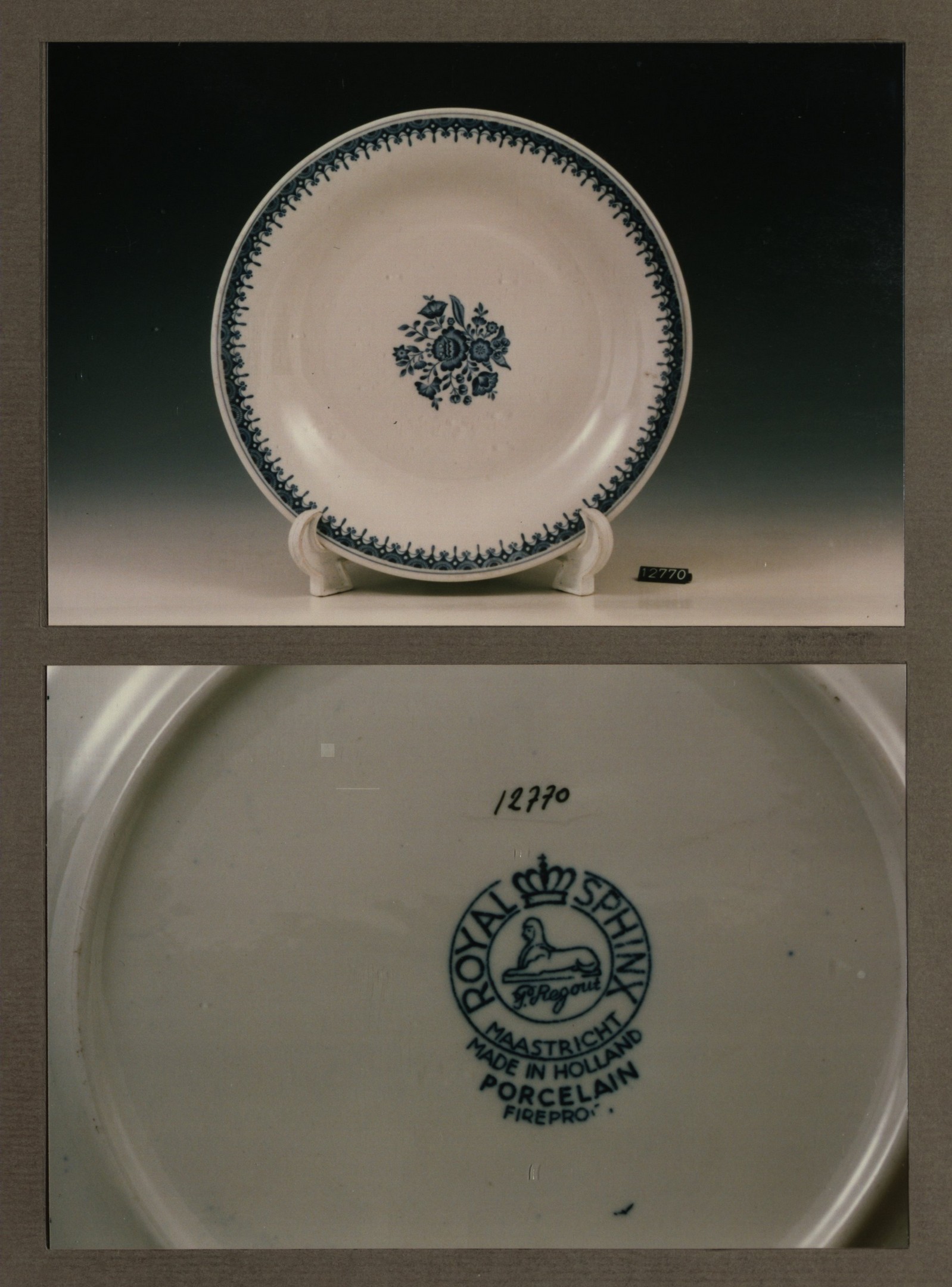 Plat bord, model H met decor Bouquet bleu