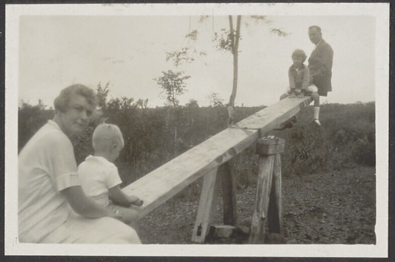 Europese familie op de wip-wap
