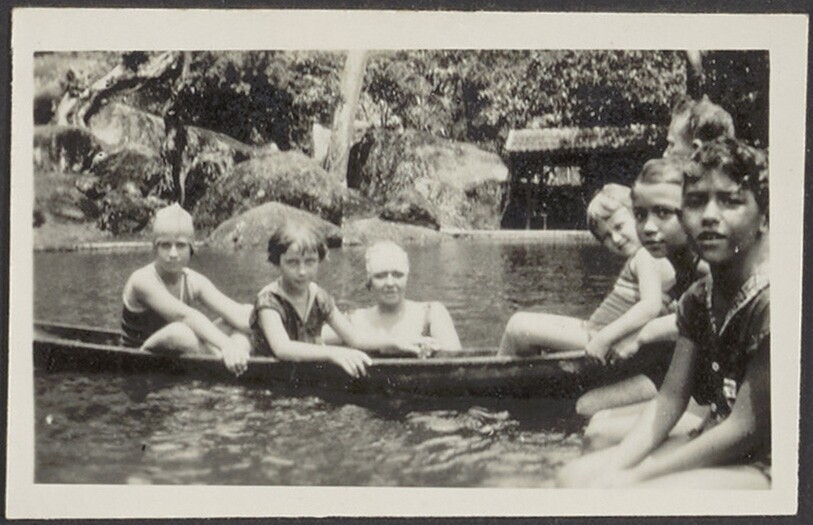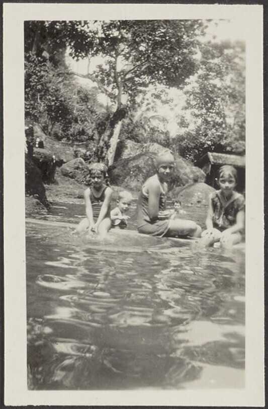 Europese kinderen te paard met Javaans huispersoneel...