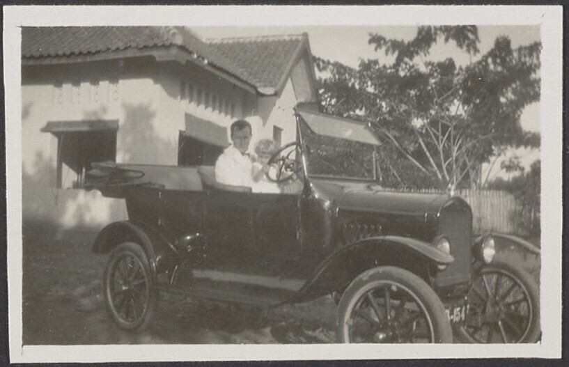 Europees en Javaans kind bij hek