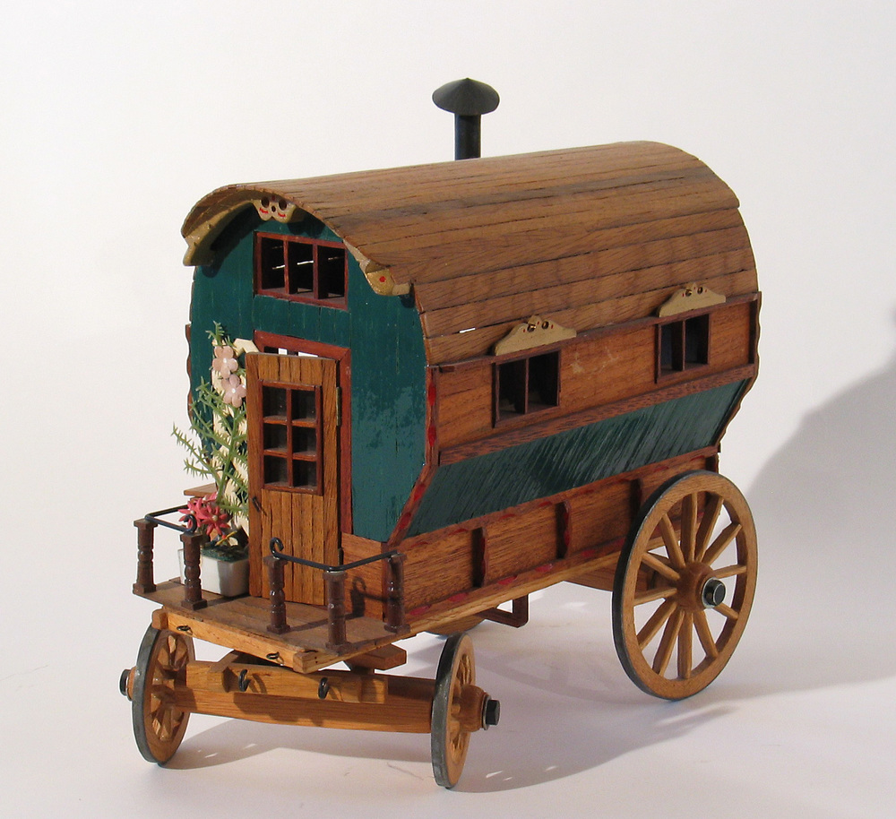 Woonwagen, van hout, miniatuur, vervaardigd door Hei...