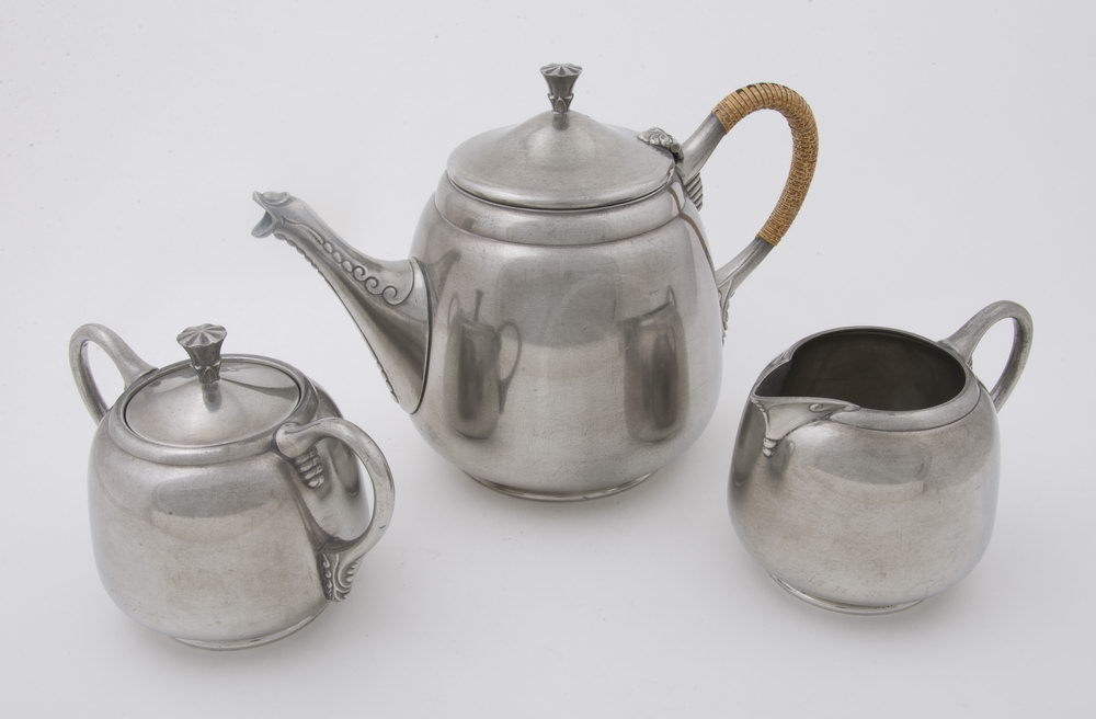 Theeservies van nieuw tin, vervaardigd door Metaalwa...