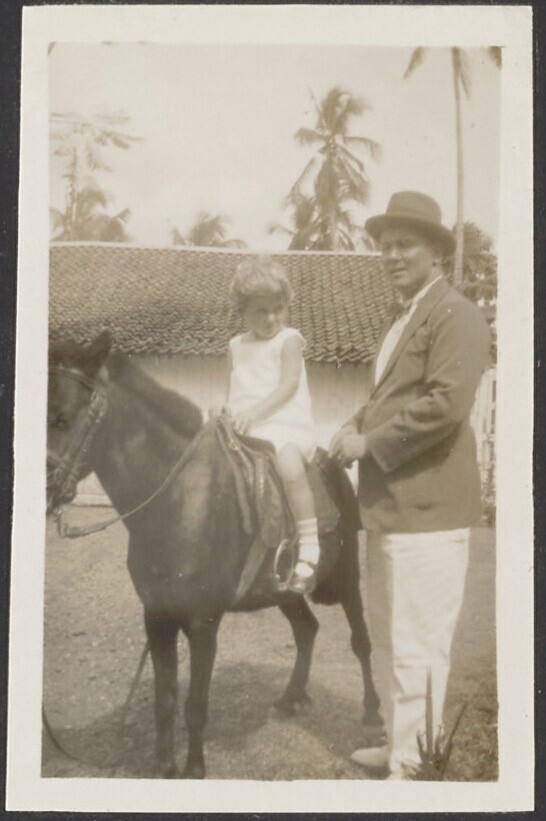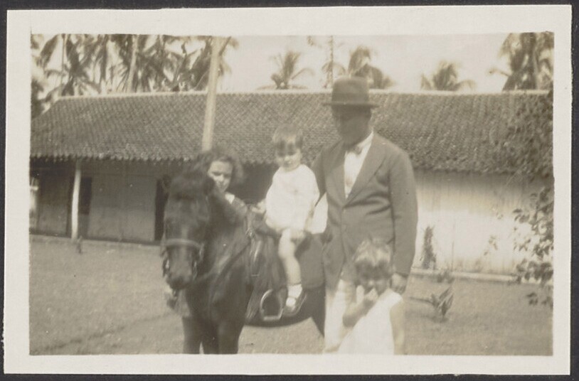 Europese vrouw met kind en een Javaanse kinderverzor...