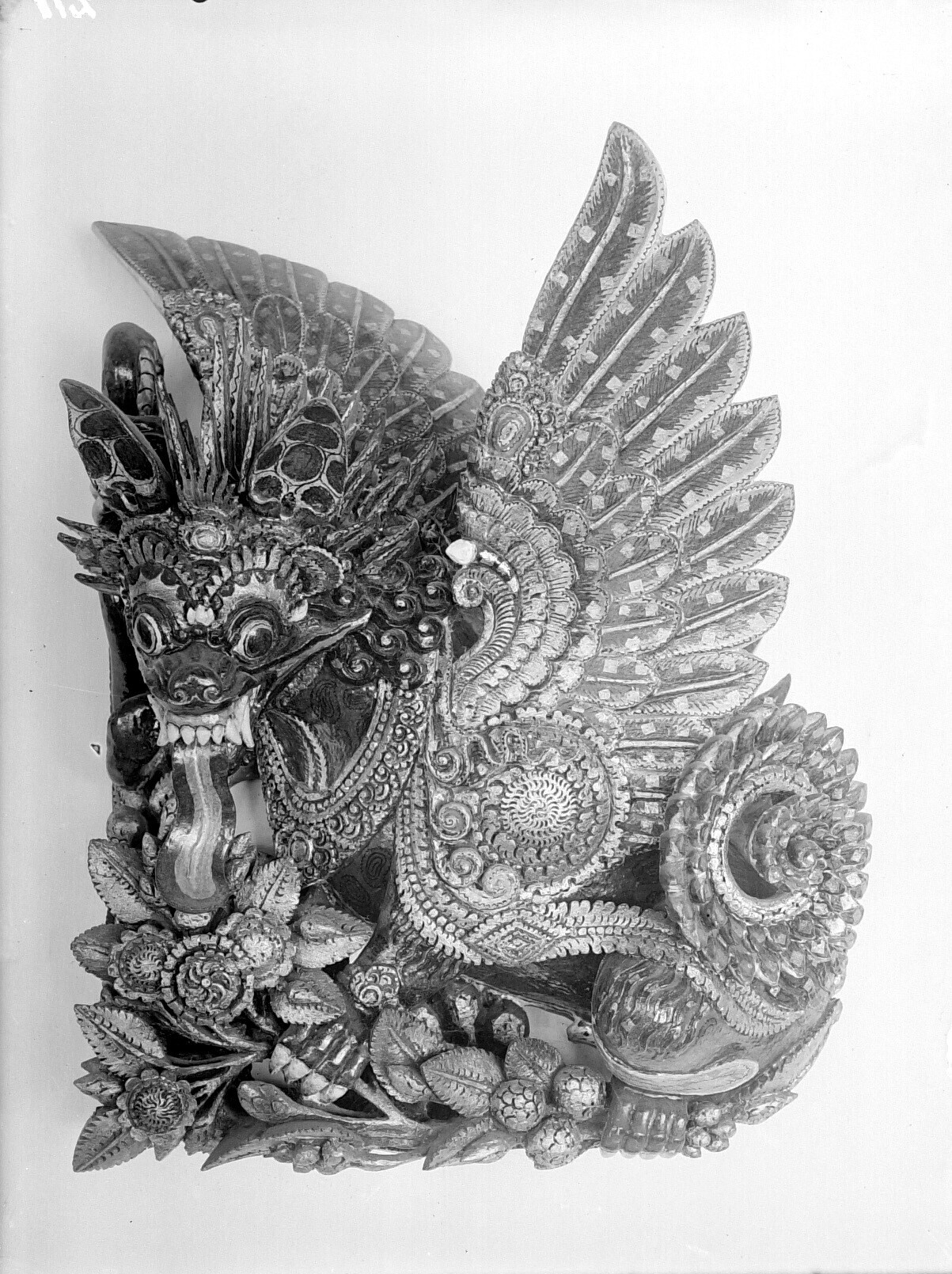 Houtsnijwerk waarvan de voet wordt gevormd door de s...