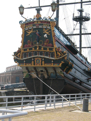 Voorplecht van de reconstructie van VOC-schip 'Prins...