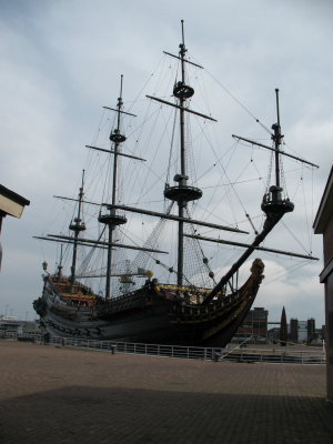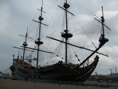 Bakboord van de reconstructie van de 'Batavia'' op d...