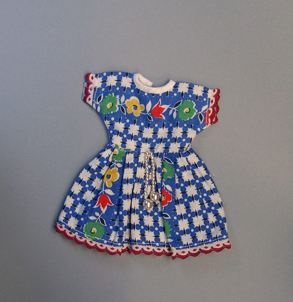 Katoenen jurk, met hoedje en tasje (van Barbiepop)