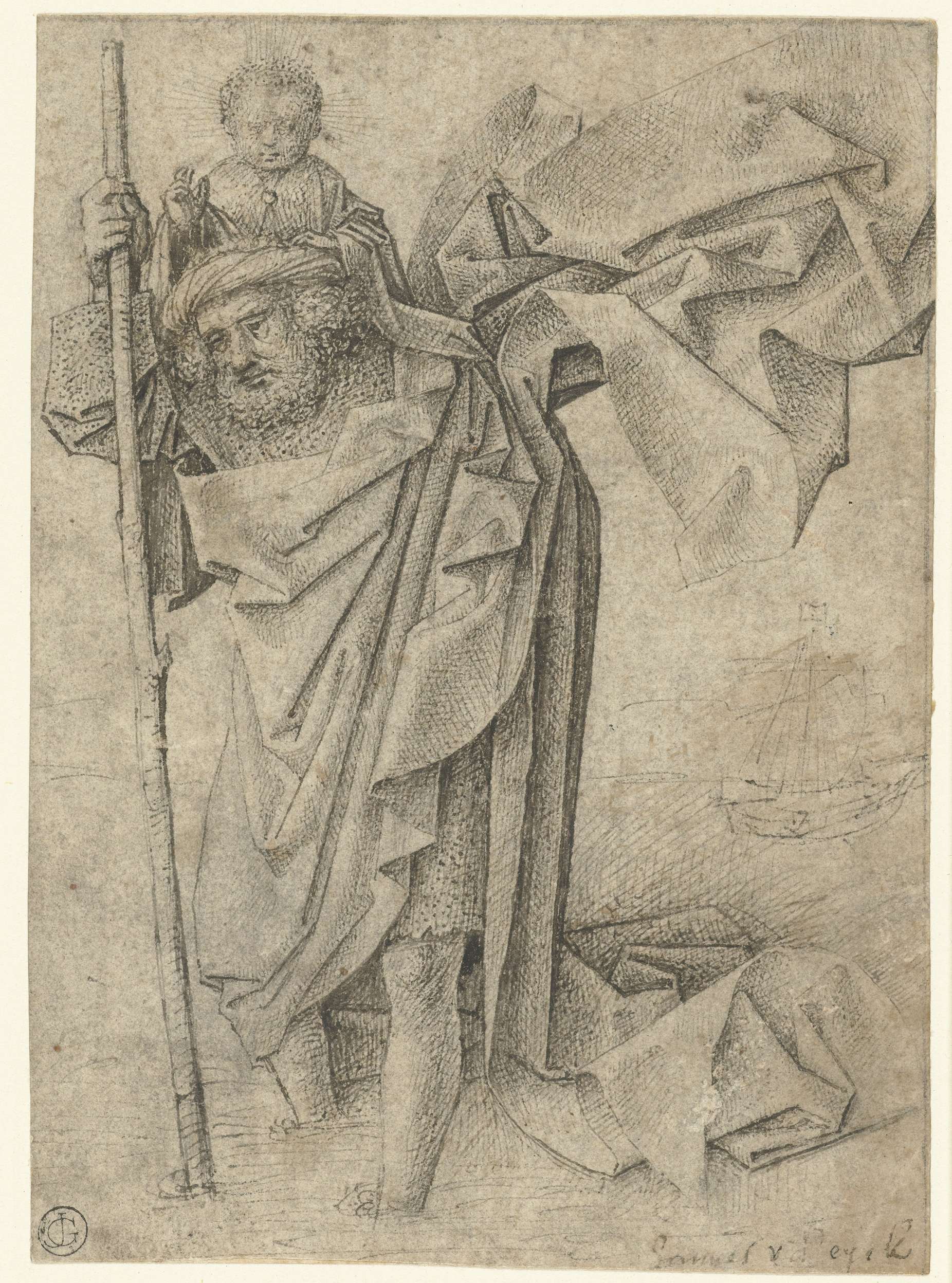 Staande man met hoed, in wit hemd en kuitbroek, op d...