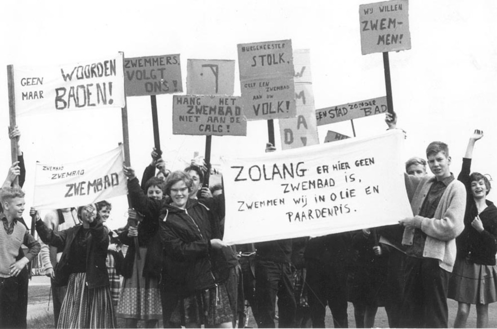 Protest tegen het vuile water in het zwembad van Tie...