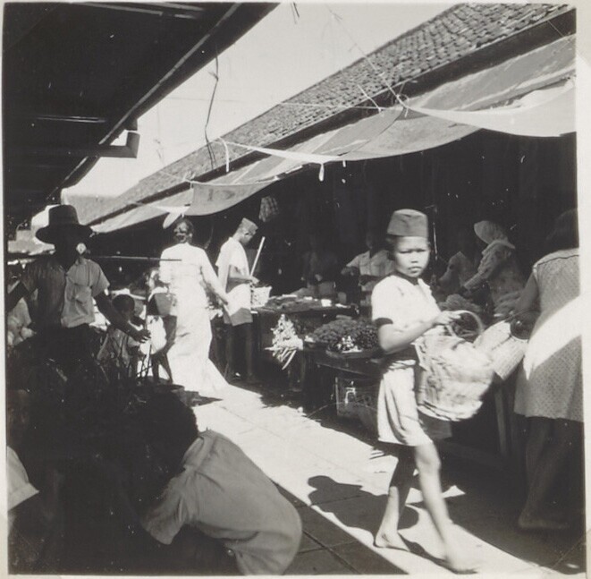 Gezicht op de markt met Javaanse mensen