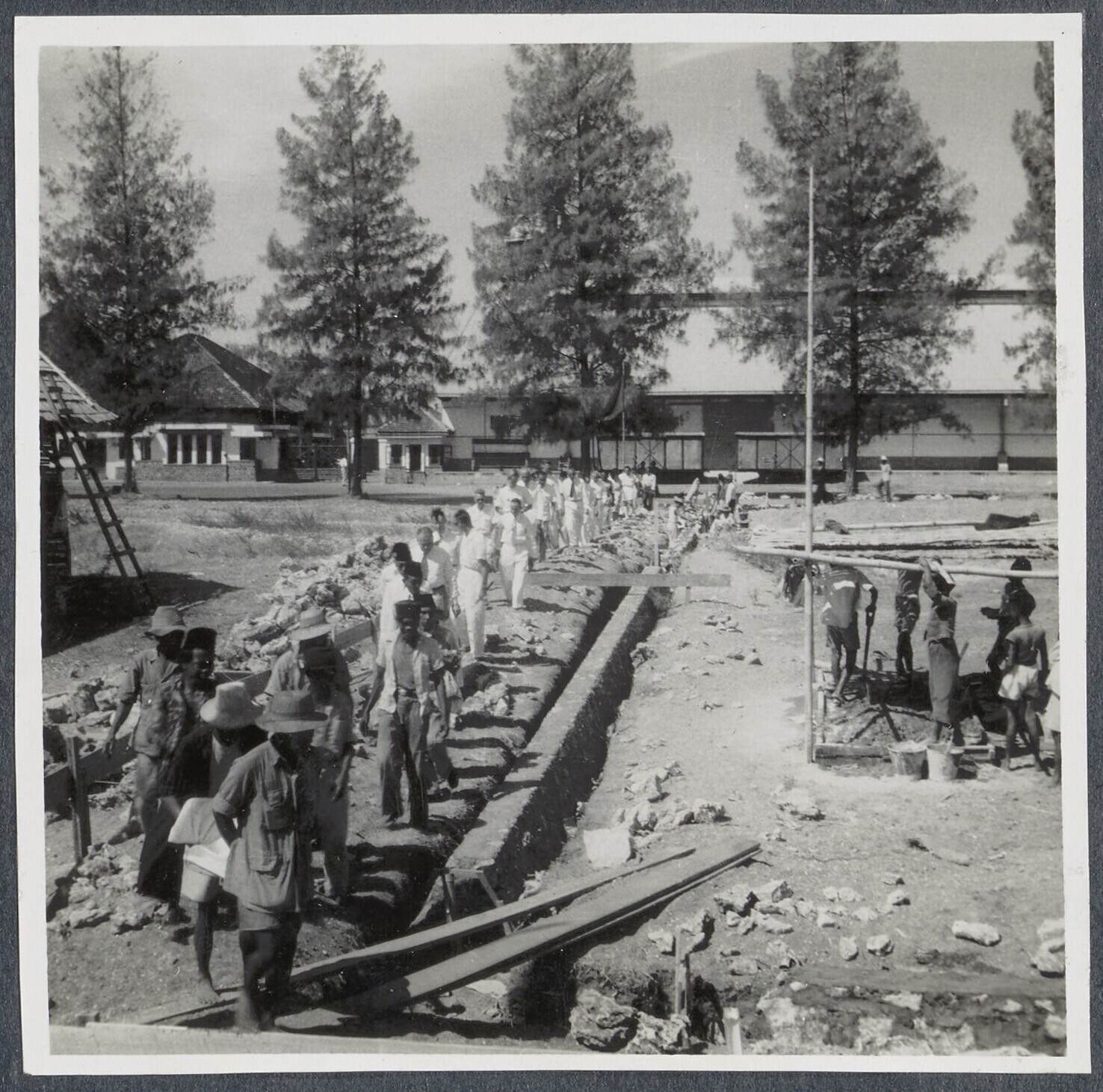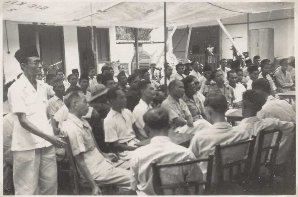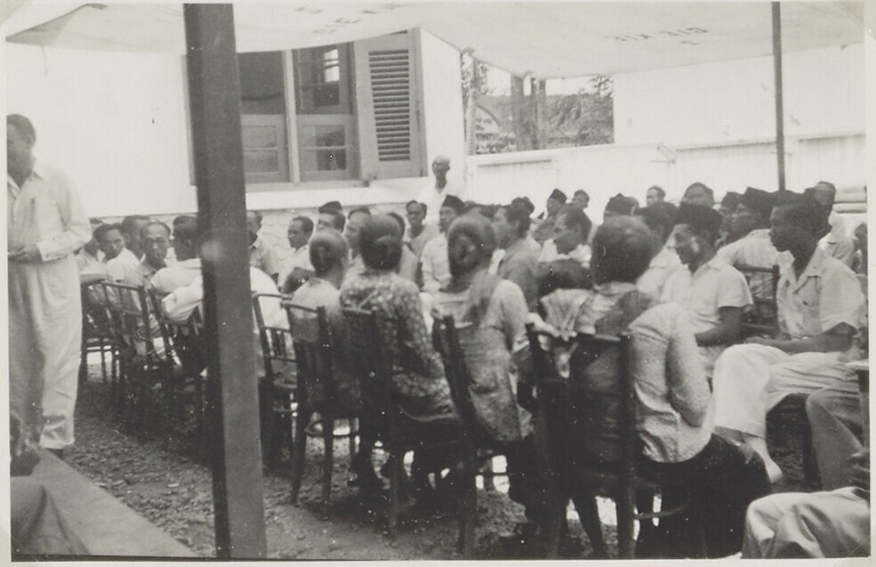 Javaans personeel bij de toespraak van de directeur