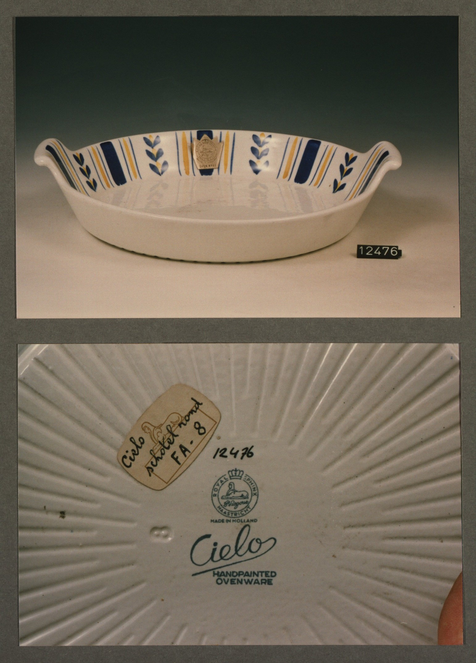 Schaal - ovaal, model FA met oren met decor Cielo