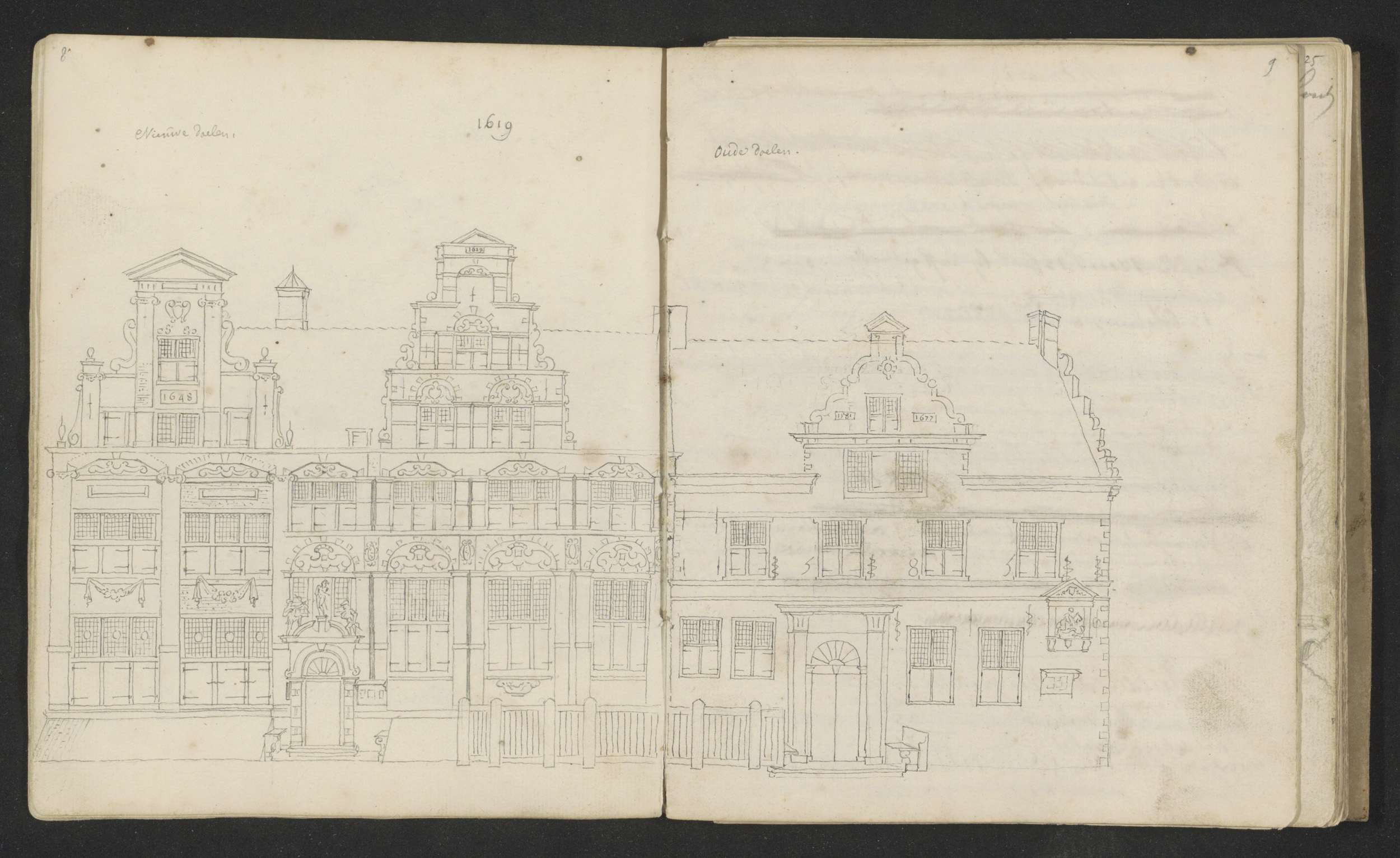 Opstand van de gevels van de Nieuwe Doelen en Oude D...