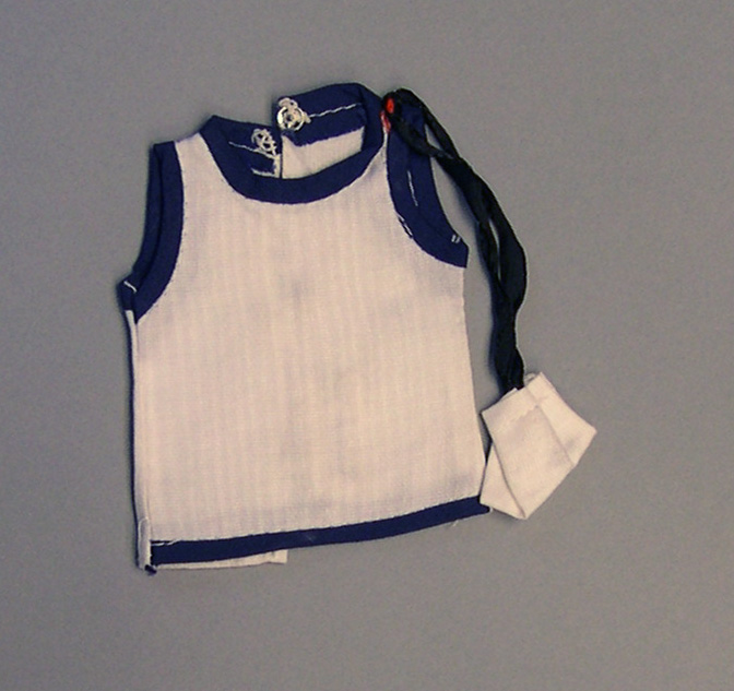 Ensemble lange broek, vestje en baret (van Barbiepop)