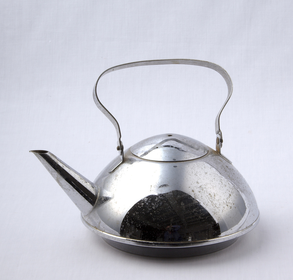 Theeketel van vernikkeld metaal, vervaardigd door Me...
