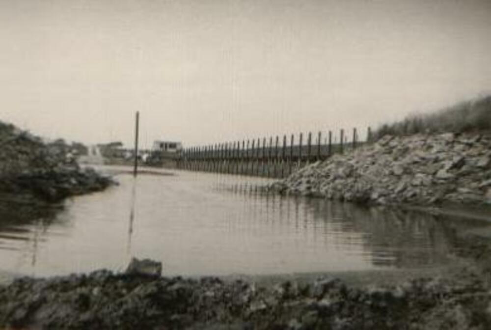 Zwart-wit foto van de Spijkse overlaat 1970