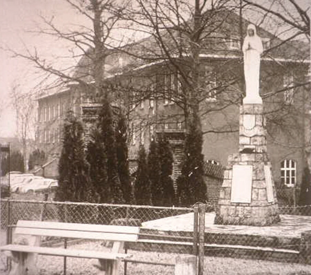 Het beeld Maria van Banneux uit 1956 op de stadsdam ...