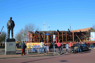 De IJsselkogge wordt een stukje op de grote dieplade...