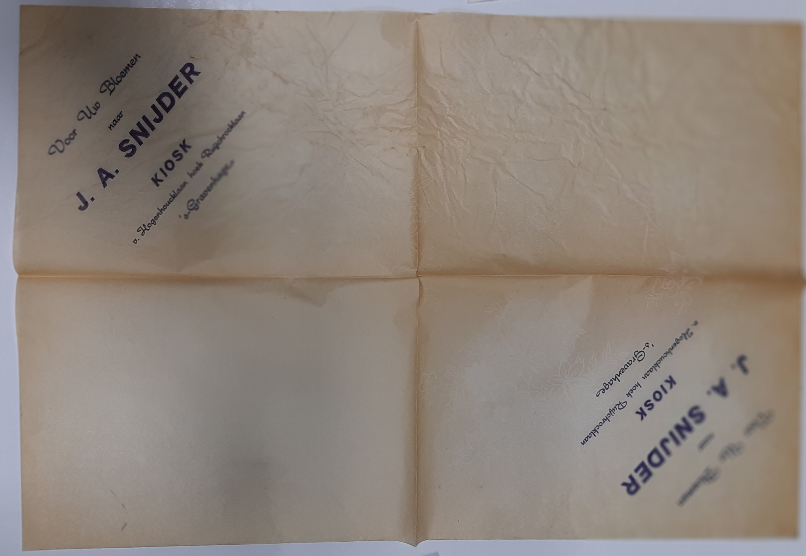 Papieren wikkel voor bloemen van kiosk J. A. Snijder