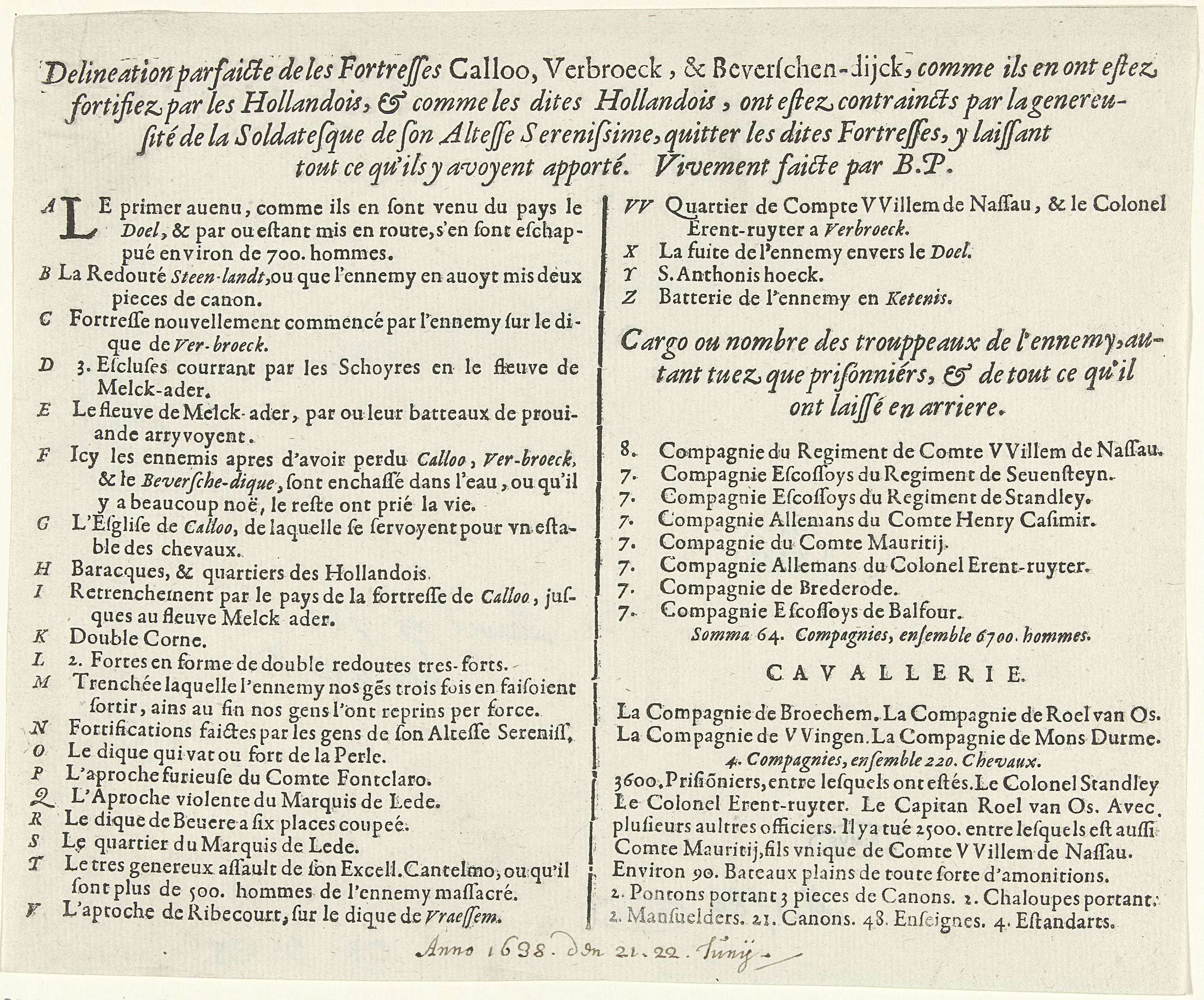 Frans tekstblad bij de prent van de mislukte aanval ...